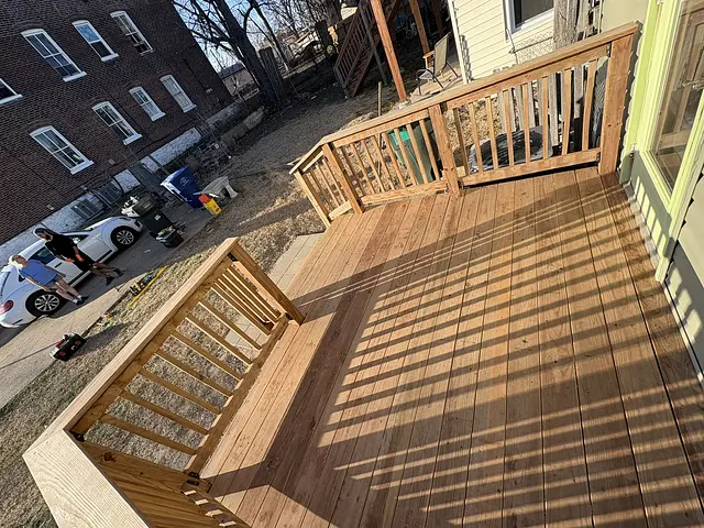 Deck builds, replacements, repairs, and additions. We work with pressure-treated or composite decking, and install wood, PVC, or aluminum railing.